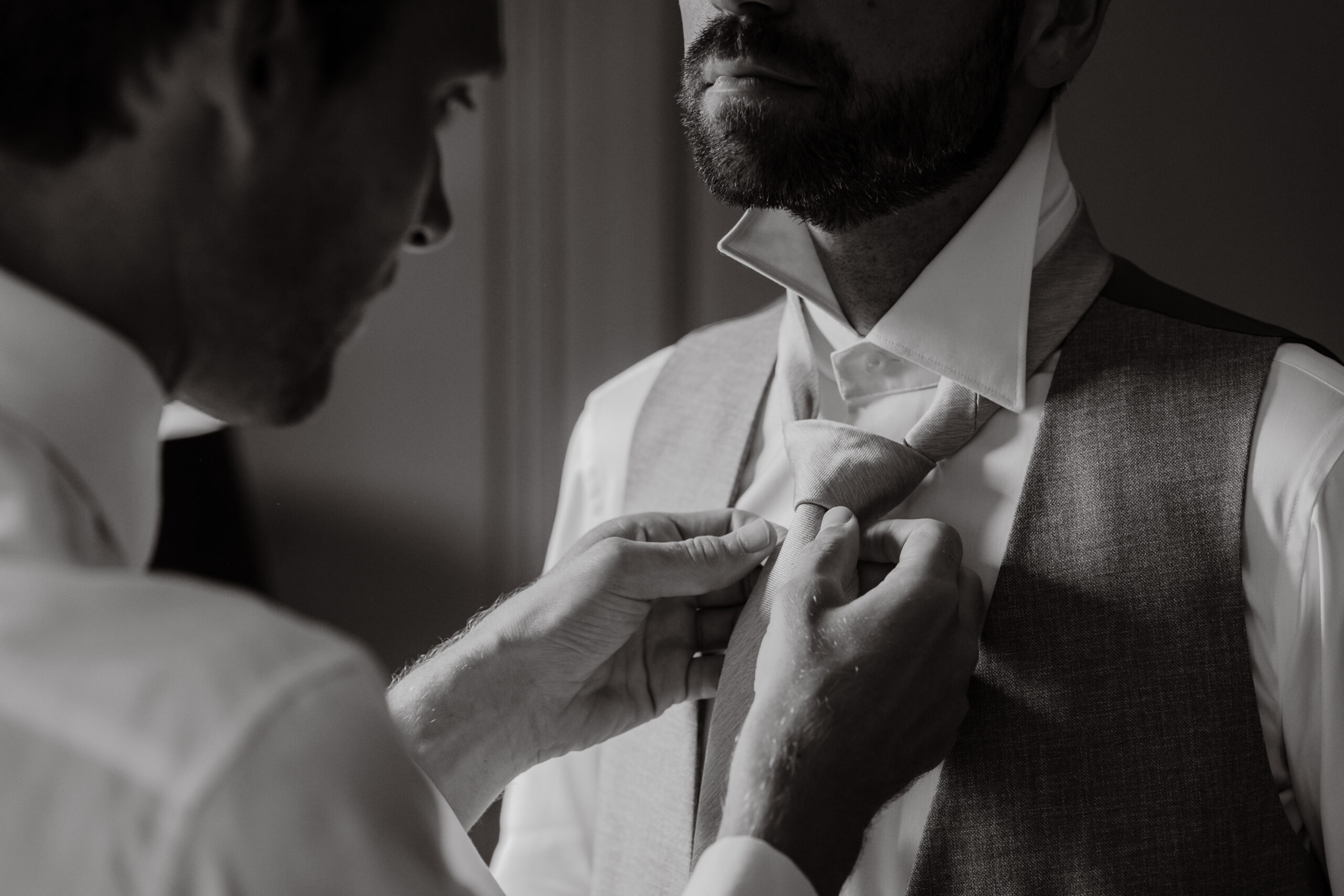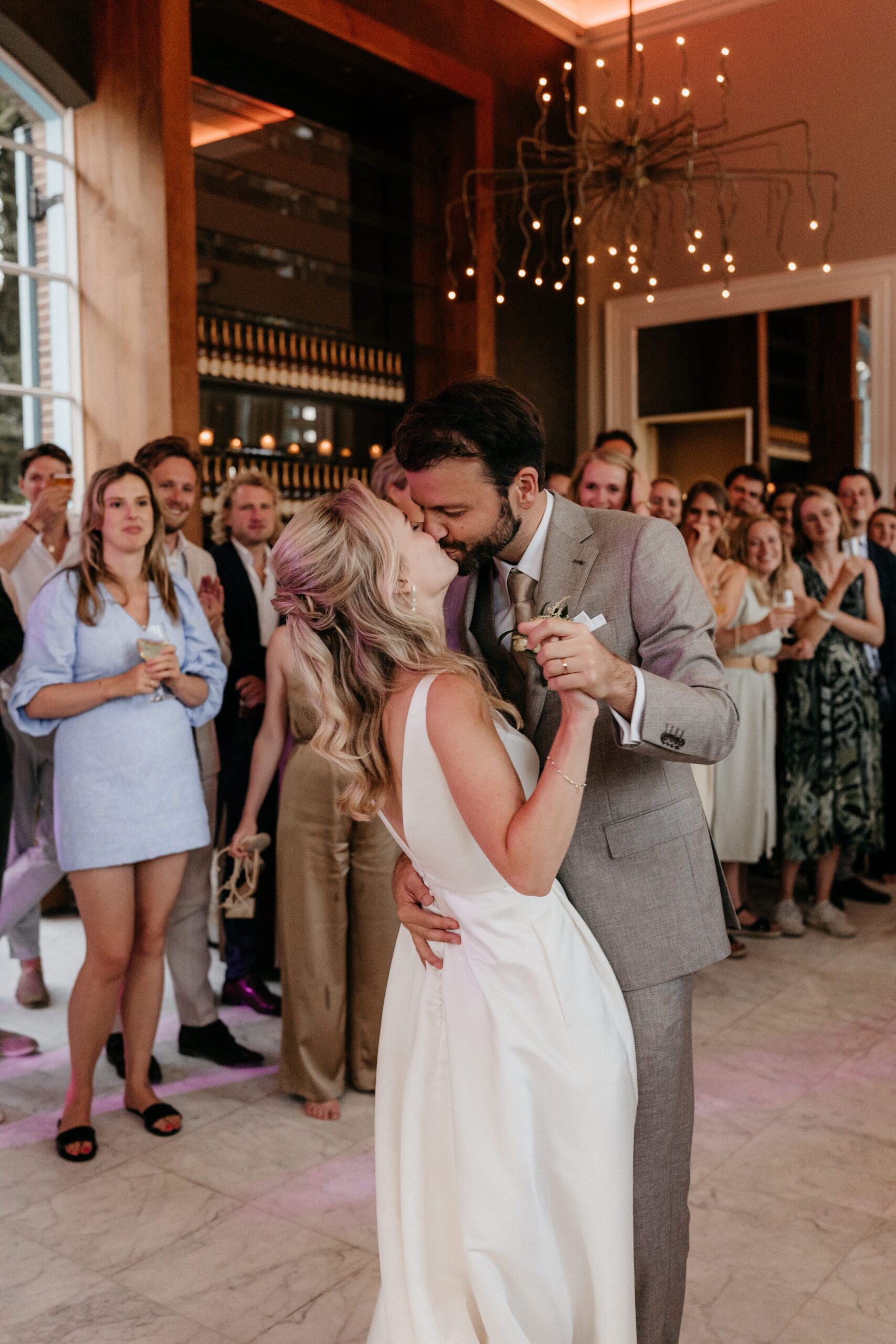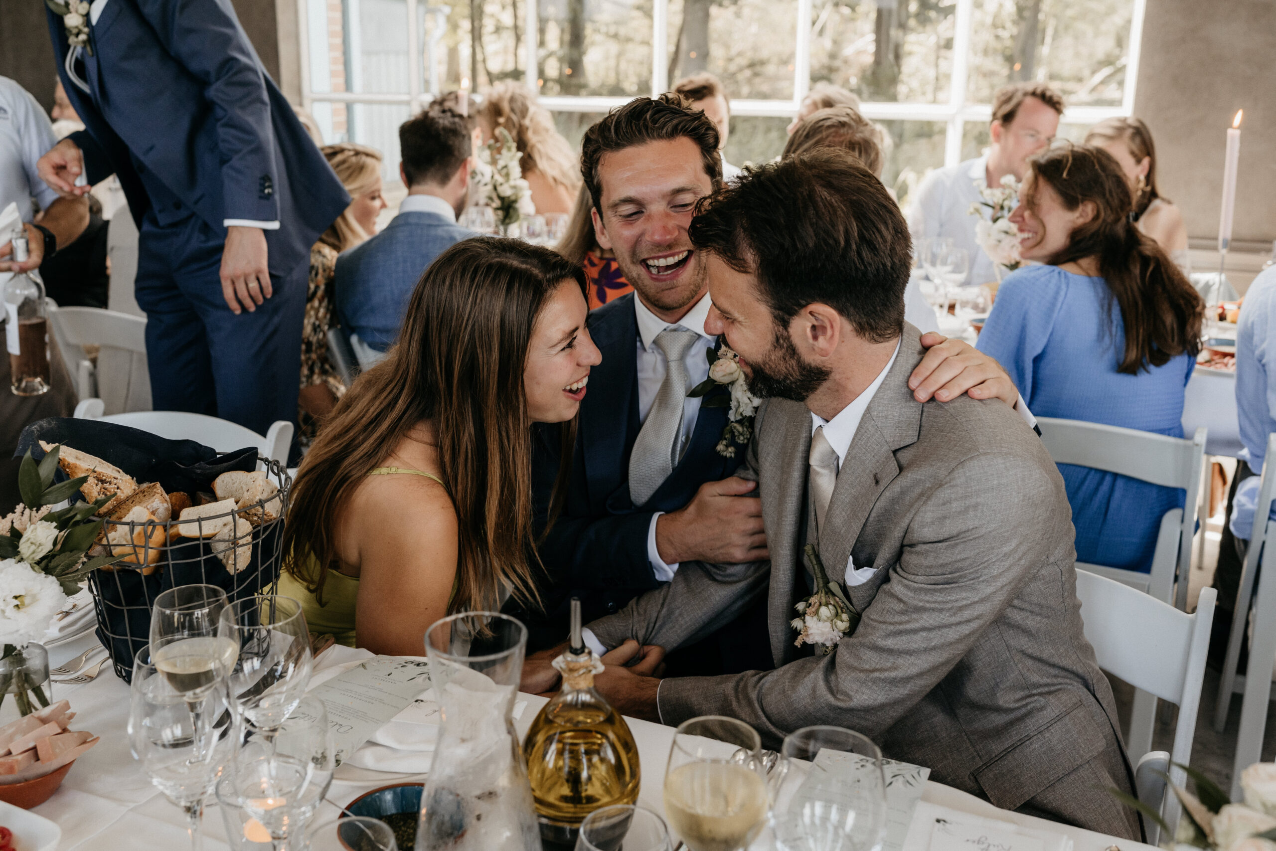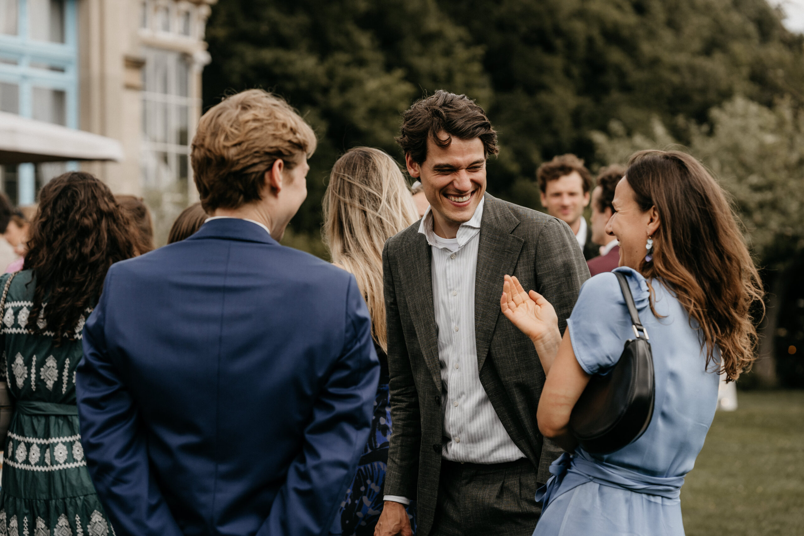 De dag begon bij B&B Elswoutshoek in Overveen, een fijne en rustige plek om de bruiloft te starten. Hier waren twee aparte kamers waar het bruidspaar zich, omringd door vrienden en familie, ging klaarmaken. Een ontspannen sfeer, veel gelach, er werd geproost en mooie kleine momentjes, precies zoals je hoopt dat een trouwdag begint.