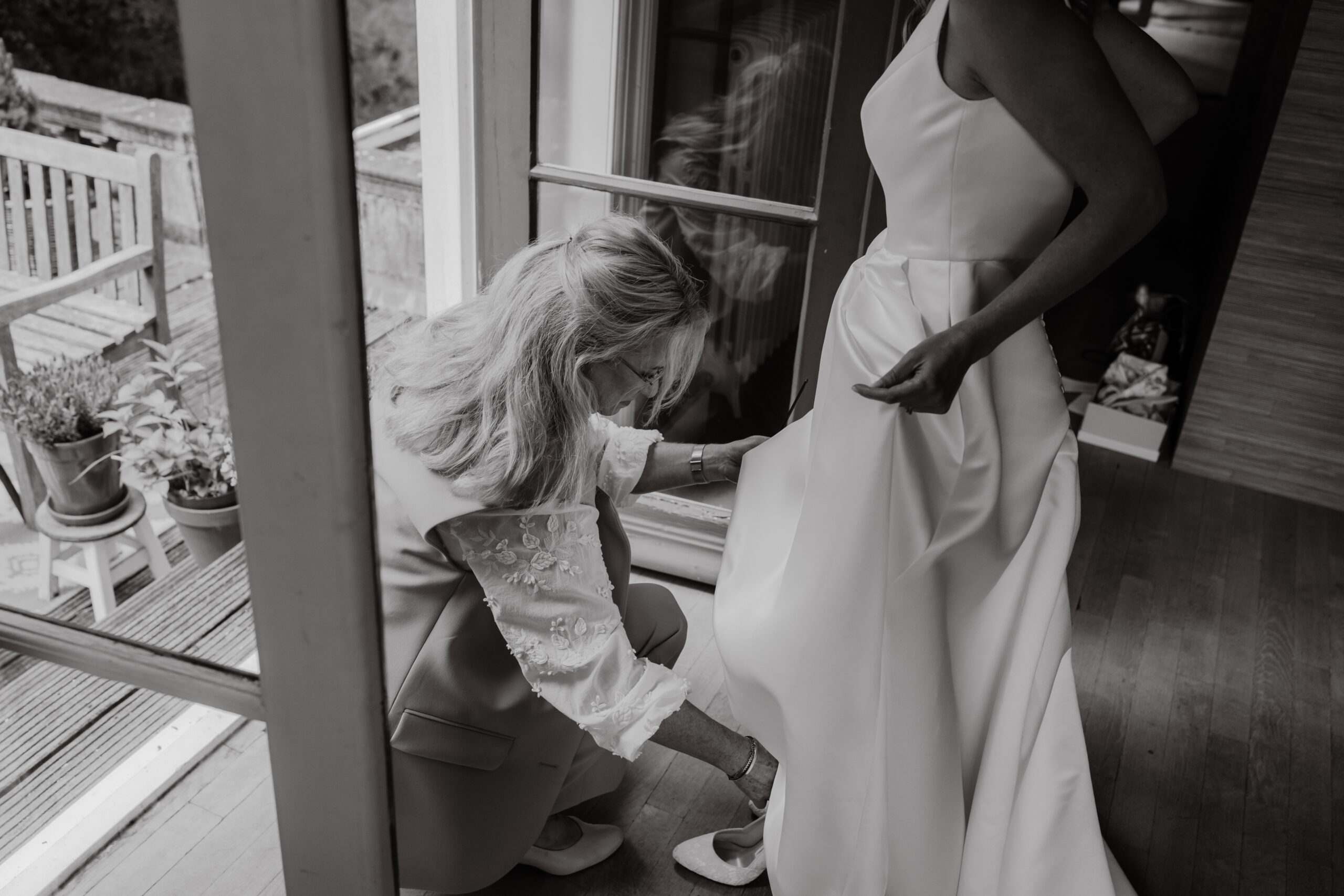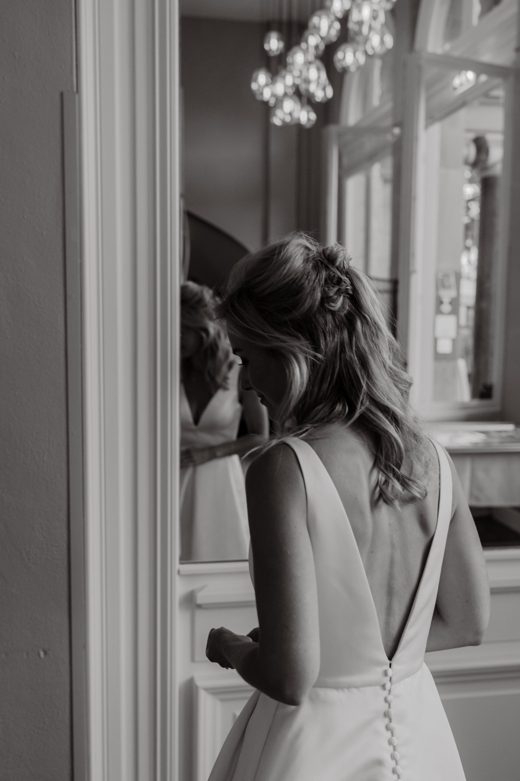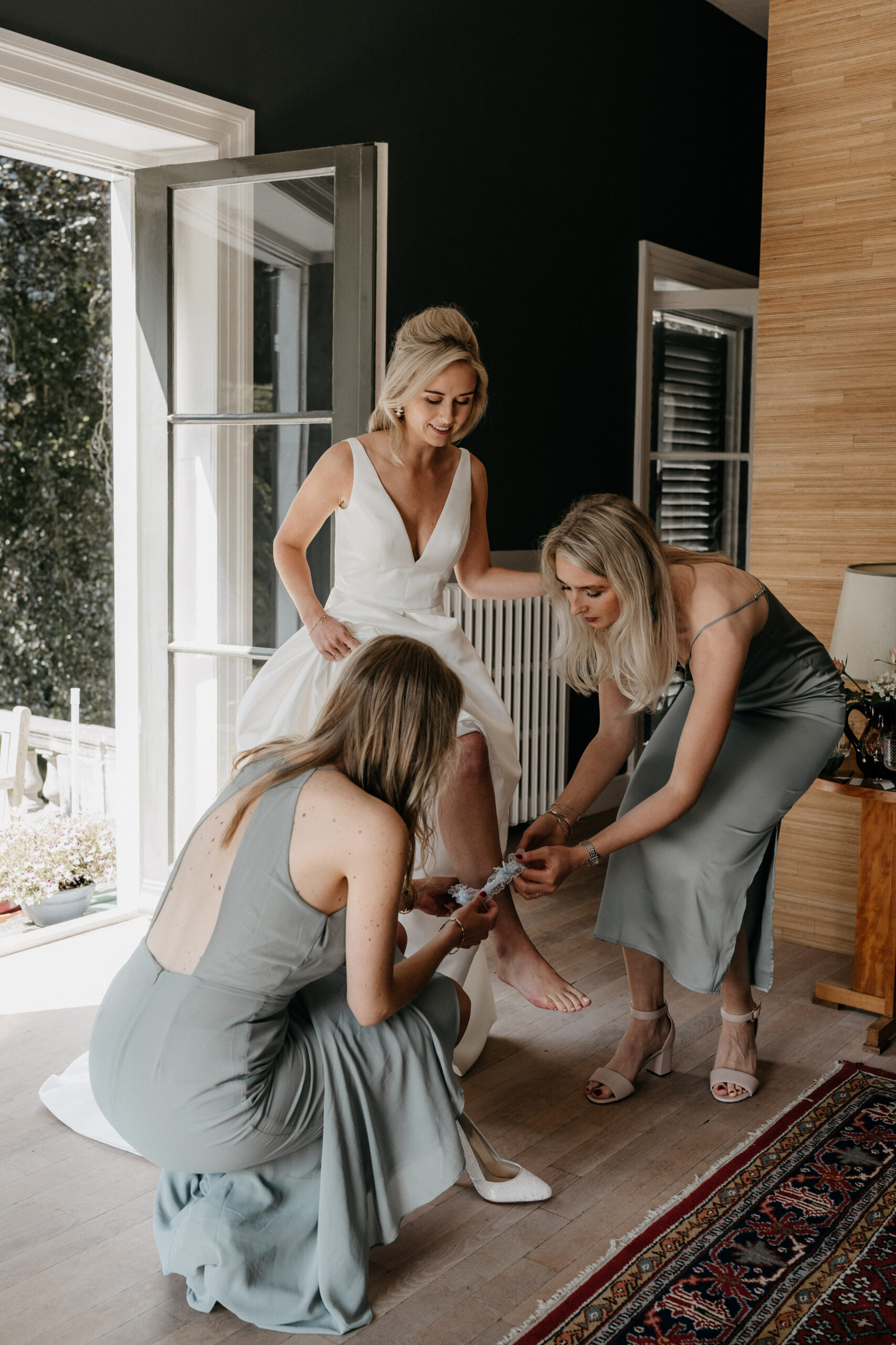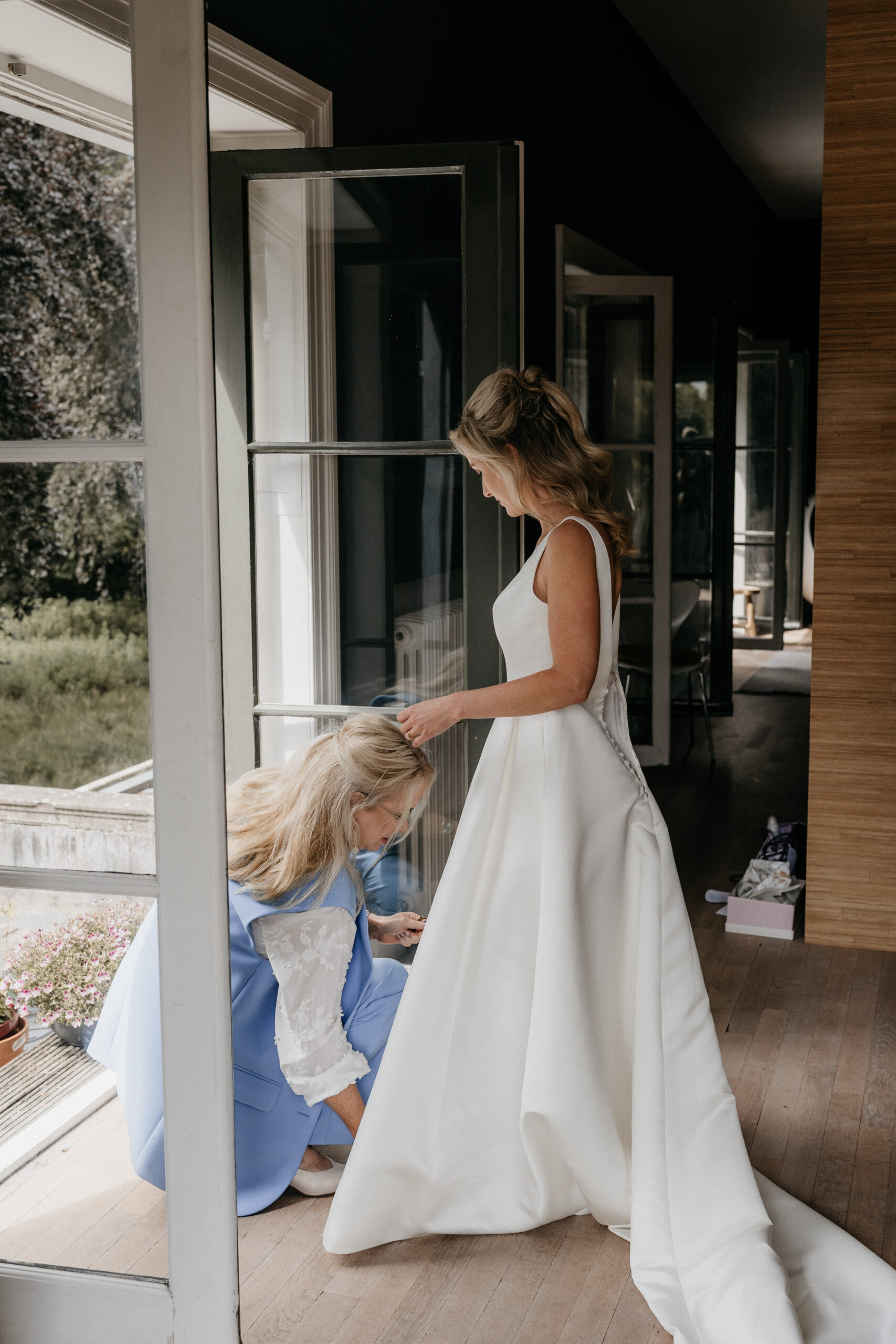 De dag begon bij B&B Elswoutshoek in Overveen, een fijne en rustige plek om de bruiloft te starten. Hier waren twee aparte kamers waar het bruidspaar zich, omringd door vrienden en familie, ging klaarmaken. Een ontspannen sfeer, veel gelach, er werd geproost en mooie kleine momentjes, precies zoals je hoopt dat een trouwdag begint.