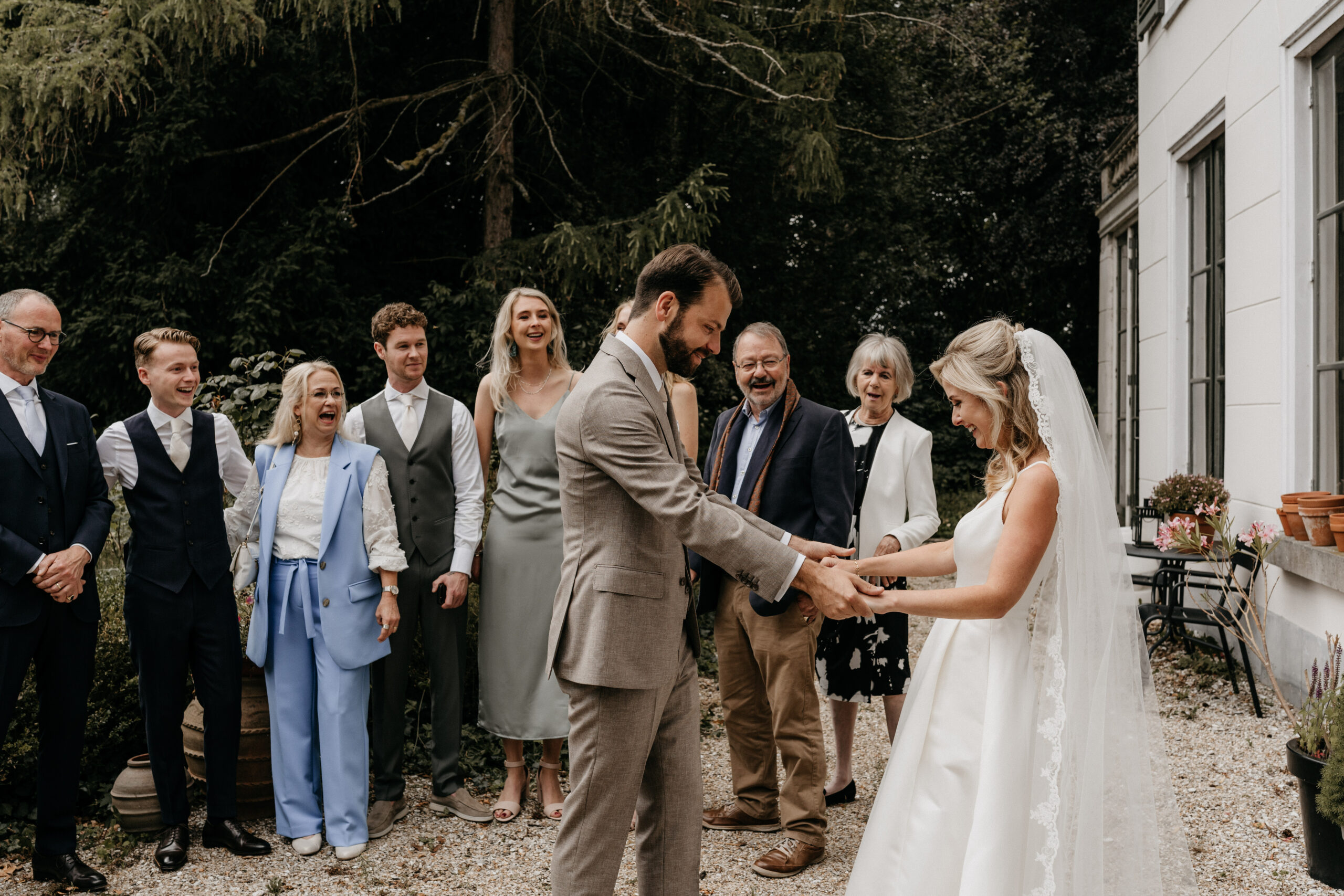 We begonnen met het maken van de foto’s rondom de Orangerie. Daarna kwamen de daggasten (en dat waren er veel) en was het tijd voor de ceremonie. Een persoonlijk en liefdevol moment op een werkelijk schitterende plek.