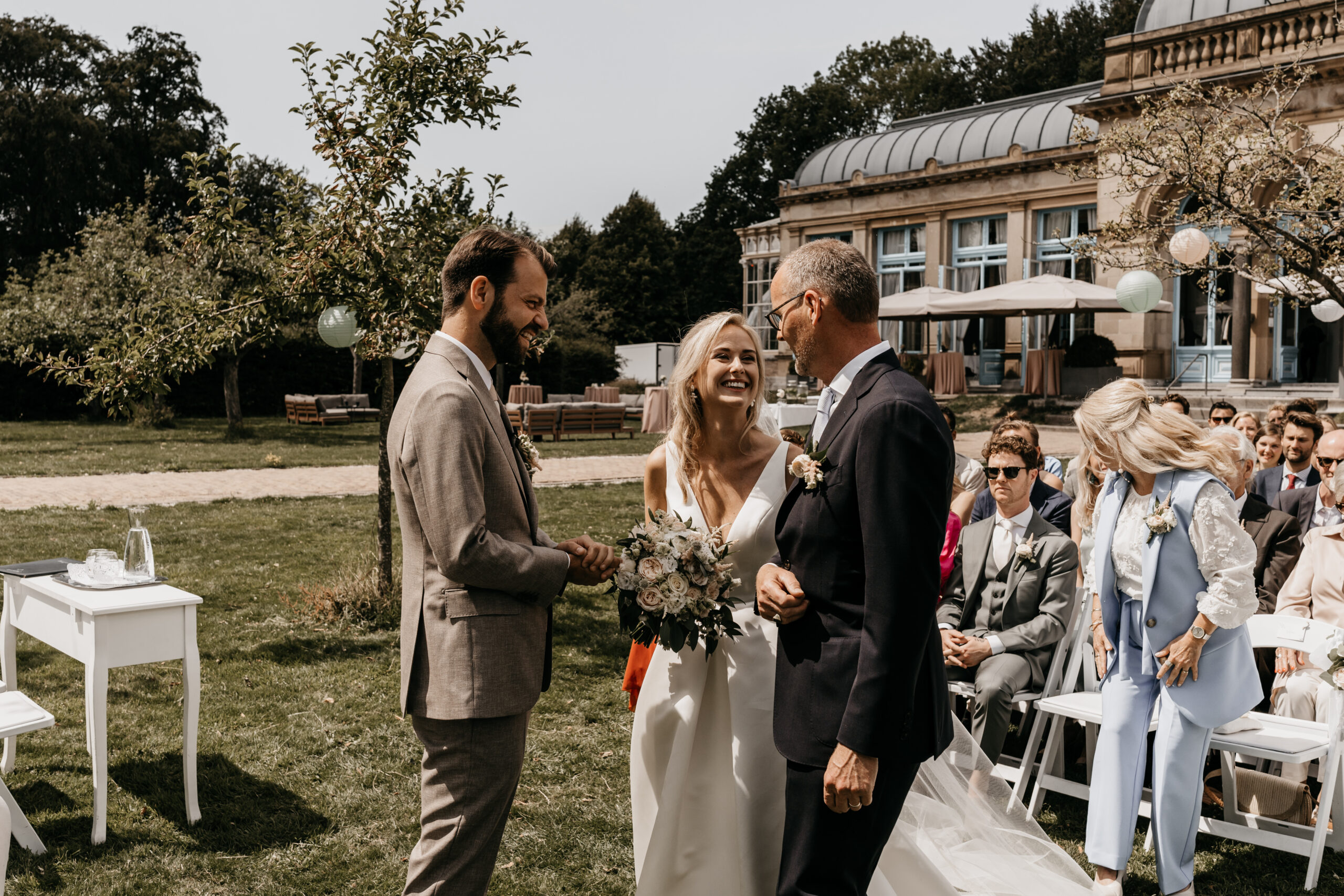 Na de first look reden we naar Orangerie Elswout, de trouwlocatie. En wat voor één. Deze plek blijft me elke keer weer raken. Het gebouw, de omgeving en de rust maken het tot een van mijn absolute lievelingslocaties. Ik heb hier al meerdere keren een bruiloft mogen vastleggen en hoop dat er nog veel mogen volgen.